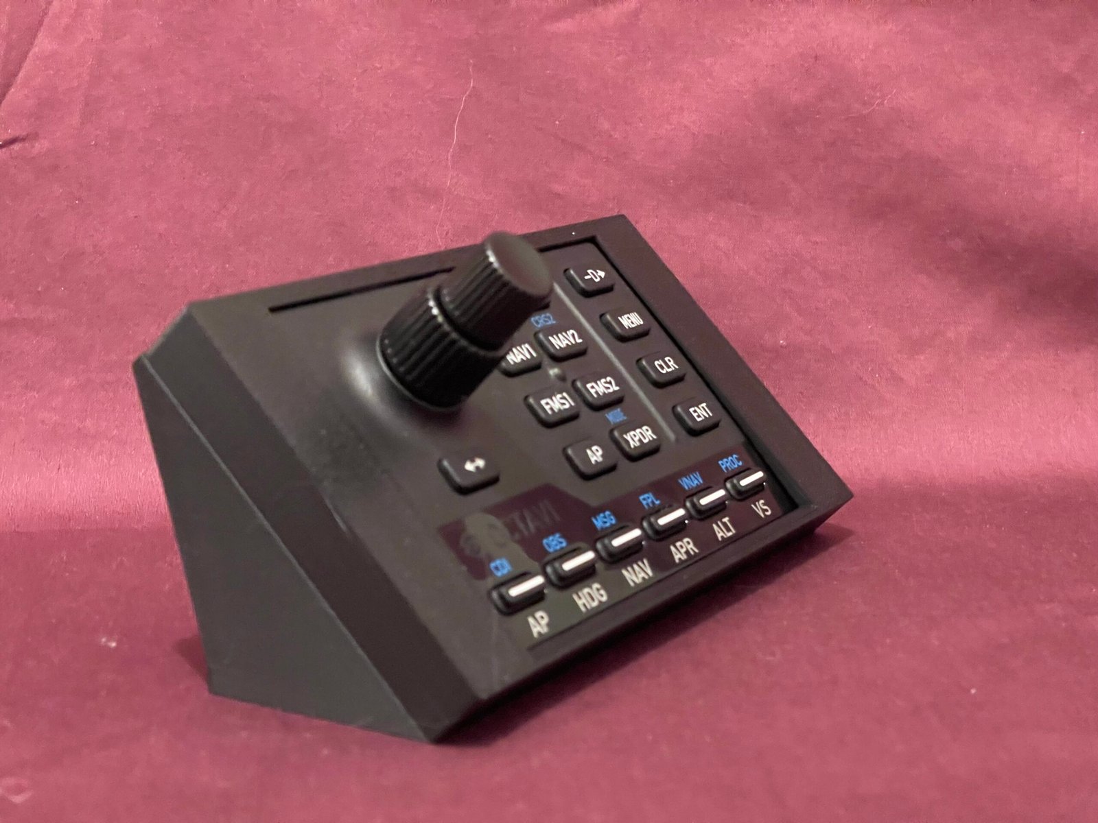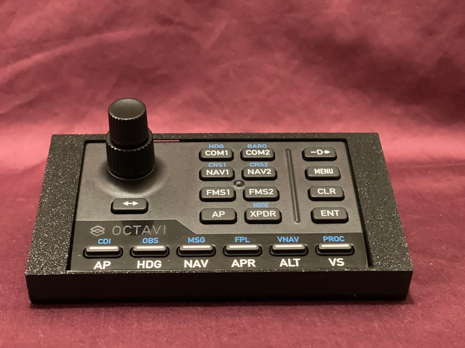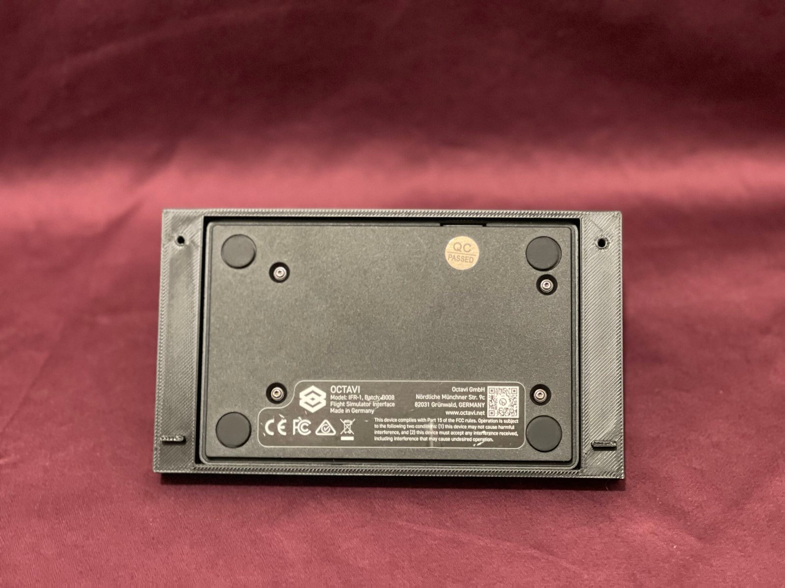 Octavi IFR-1 45 Degree Short Mounting Bracket for Logitech Pro Flight Radio Panel. We offer two degrees of tilt, 45 & 80 degrees. Please visit our store for the 80 degree version of this mount.   Spacing is 20mm apart for 7 different mounting places. This mounting bracket does NOT require you to disassemble your Octavi IFR-1 like some. We offer several different Octavi IFR-1 mounting solutions in our store. PLEASE NOTE: This is a mounting bracket and does NOT include the Octavi IFR-1. This is a 3D printed product.